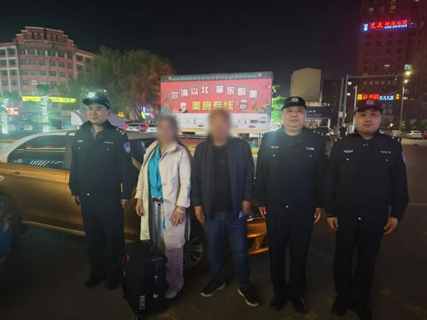 經了解,尚女士因趕車匆忙未留意車牌信息,且已無法聯系司機。巡警隊員一邊安撫其情緒,一邊根據乘車路線調取火車站周邊道路監控,逐幀排查同時段途經車輛。經半小時細致篩查,最終鎖定目標出租車并獲取聯系方式。民警隨即與司機取得聯系,確認行李箱仍在車內后,驅車陪同尚女士前往約定地點取回失物。