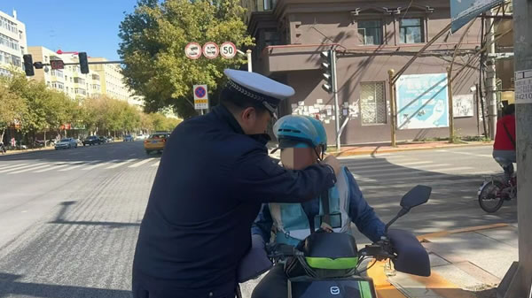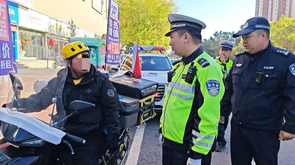 行動中,民輔警在城區電動車、摩托車通行集中路段,對摩托車、電動車逐輛進行檢查,對未正確佩戴安全頭盔的騎乘人員,現場講解正確佩戴頭盔的方法及佩戴頭盔的重要性和必要性。對未佩戴安全頭盔的騎乘人員進行教育、警告。并當面宣講交通安全法律法規等安全知識,詳細剖析駕乘電動車、摩托車不佩戴安全頭盔的嚴重危害和后果。尤其針對外賣、快遞等配送人員,民輔警在街頭逐一檢查車輛運行手續和安全性能、頭盔是否符合國家標準等情況,明確要求快遞配送人員必須發揮重點行業示范引領作用,時刻戴好安全頭盔,遵守交通法規,做好交通安全的帶頭人。