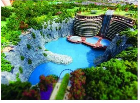 這個深坑是解放前日本侵略者的采石場,現由迪拜帆船酒店設計師設計變成了美輪美奐的深坑酒店!酒店配備水下情景套房、空中花園、壯觀瀑布等,預計明年上半年開業!