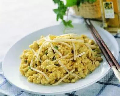 2.鍋內(nèi)油燒熱,投入蔥花煸香,放人魚腥草煸炒幾下,倒入雞蛋一起煸炒至成塊,加入適量水和鹽,炒至雞蛋熟而入味,點入味精推勻即成。